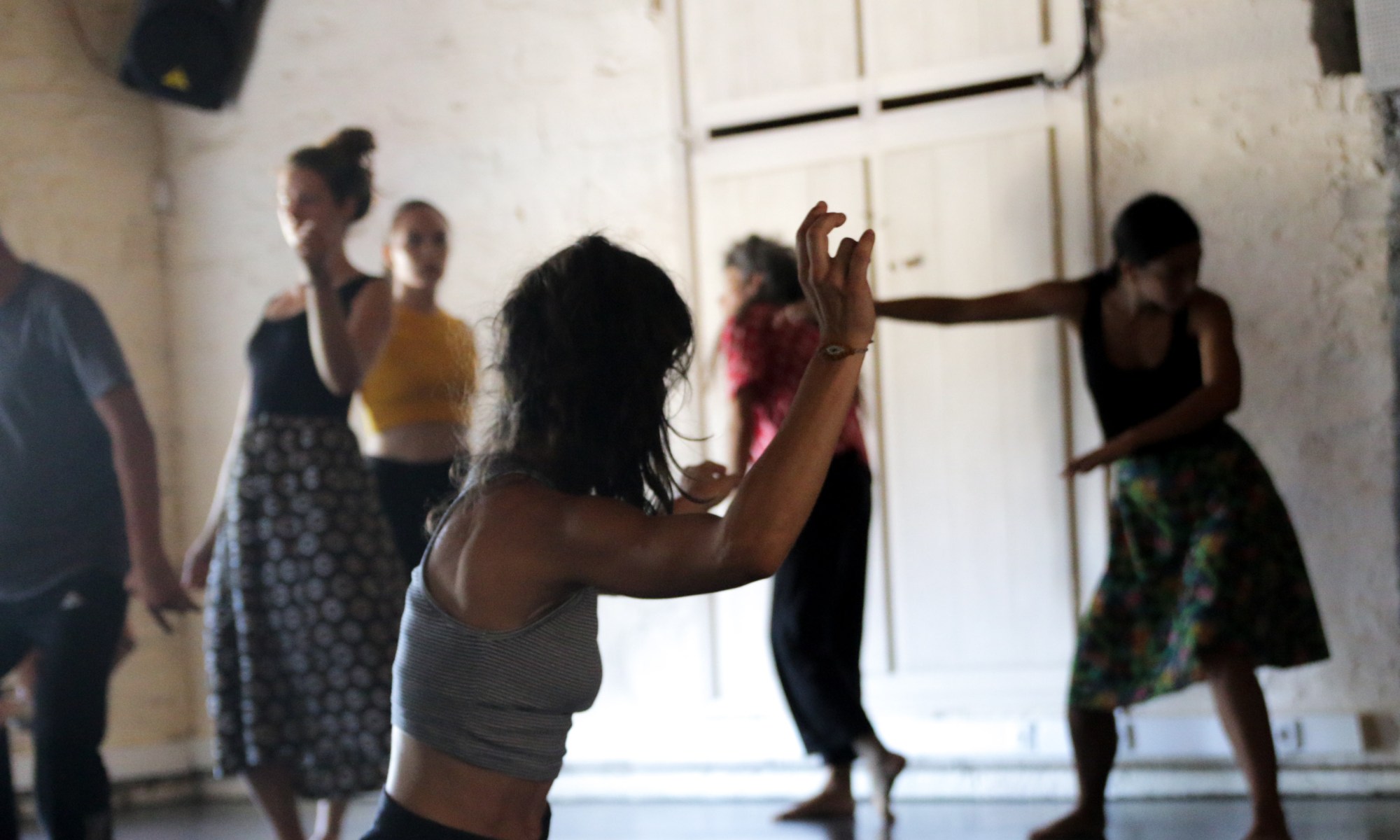 4rth cycle of the research (2019) included site-specific (BodIS) and site-sensitive (Mapping Bodies) collaborative choreographic work, along with a pedagogical research trajectory, developed in both works within the same mixed aged (13-55) cast of four dancers and five preprofessional dance students. How dramaturgy of space inspires dance dramaturgy and choreography and vise versa was the main focus of this research cycle, which was pursued by bringing together and working through spatial structure experientially, deploying the kinesthetic methods developed during cycle 1-3.