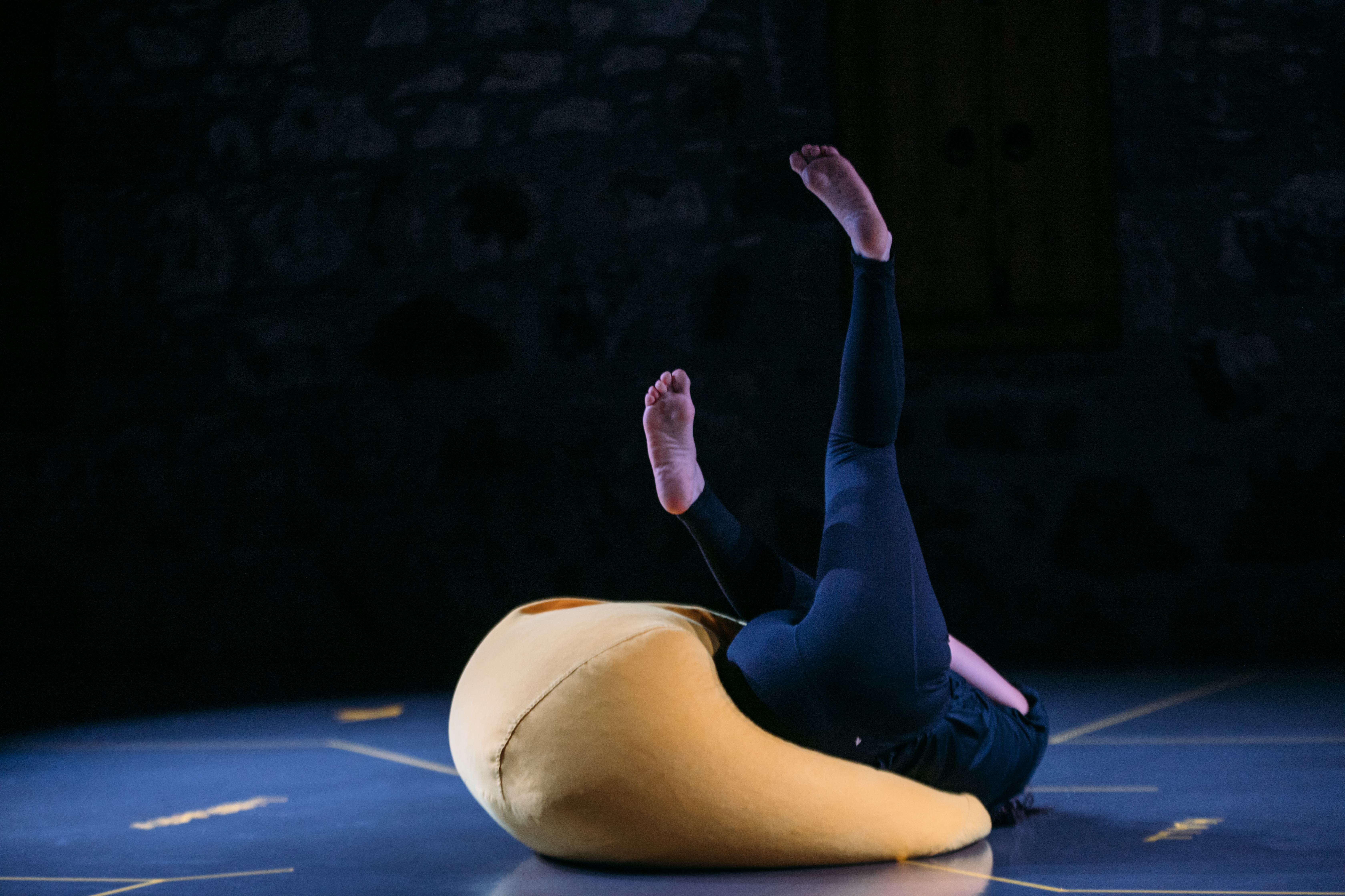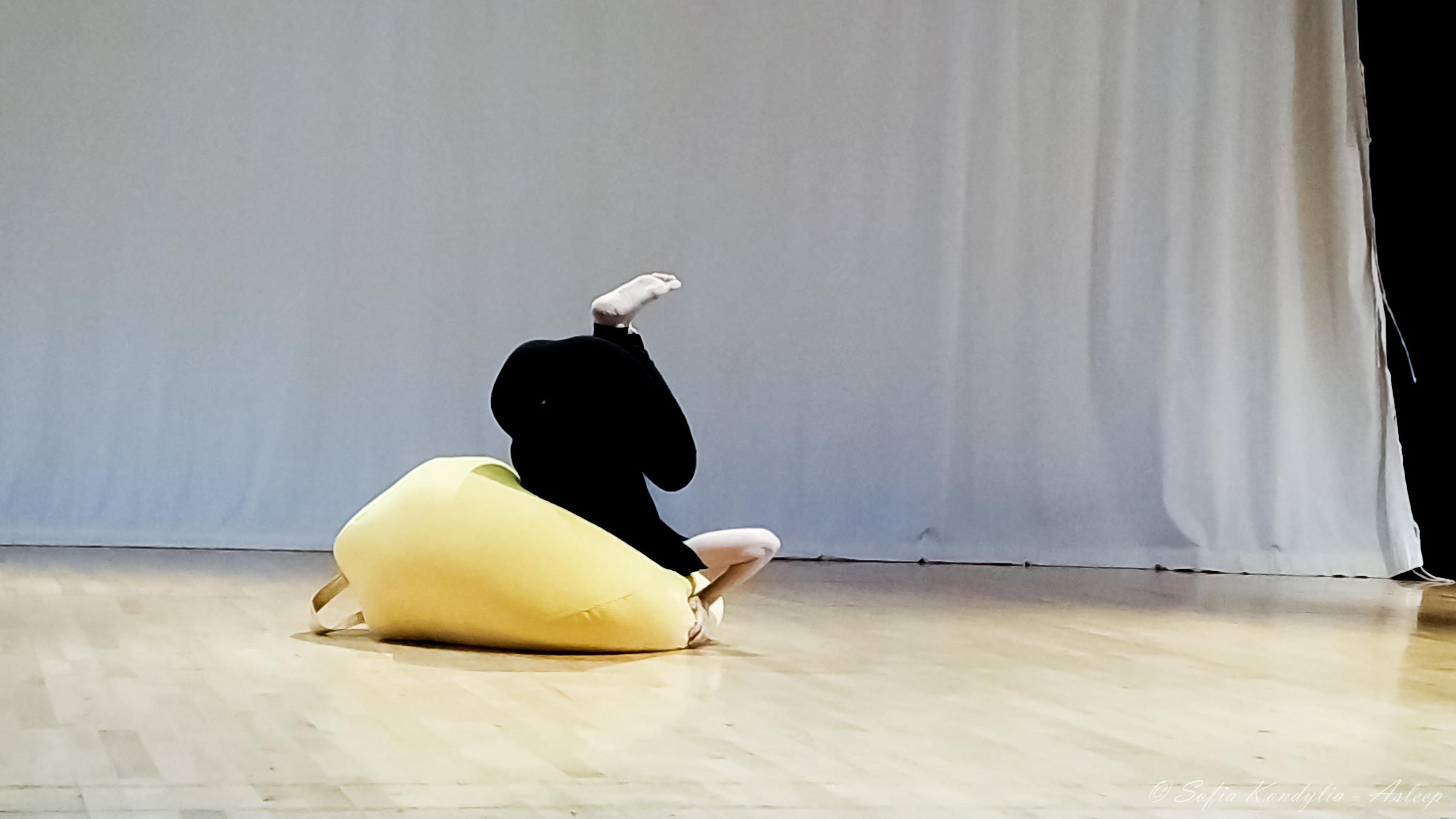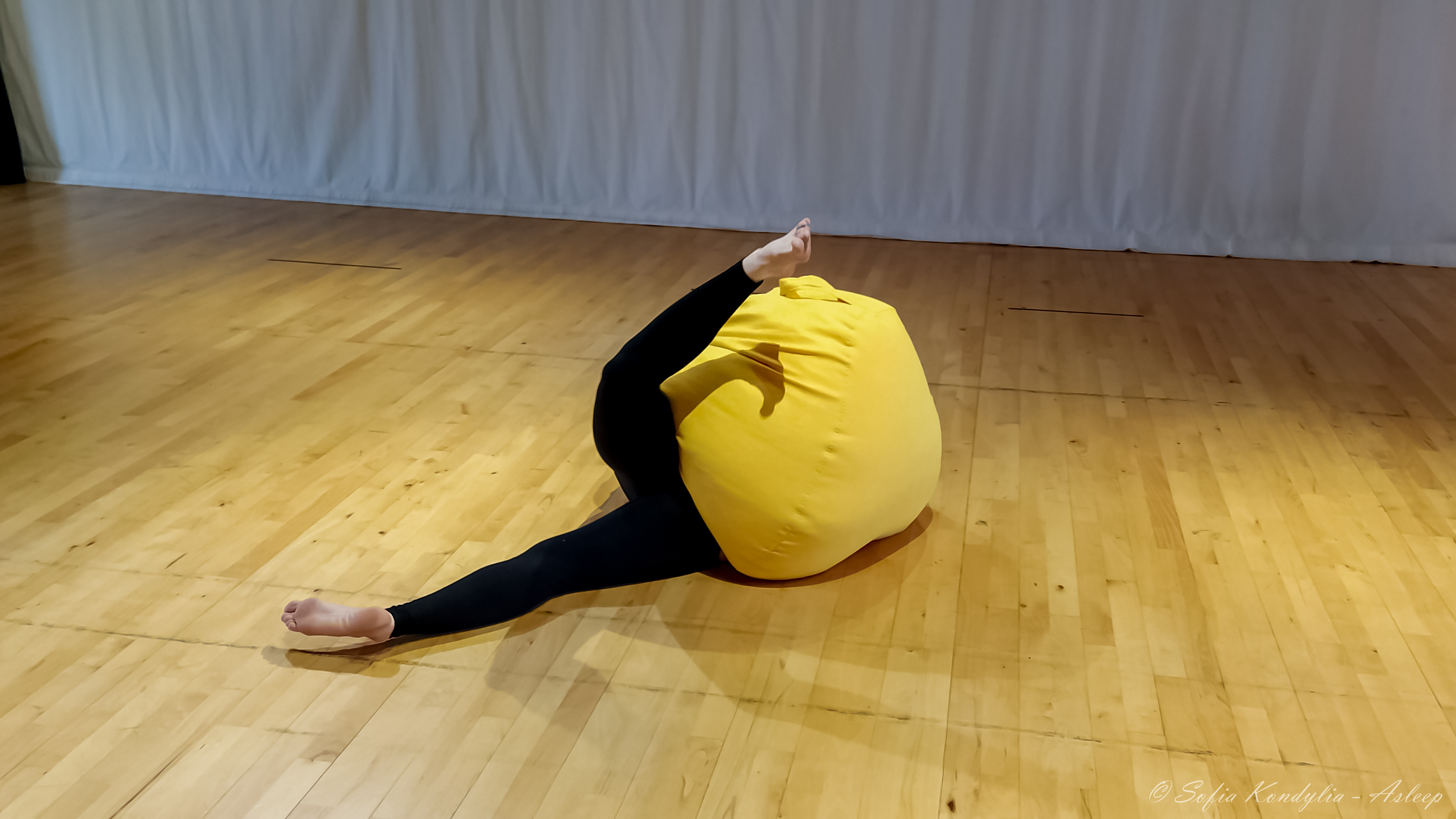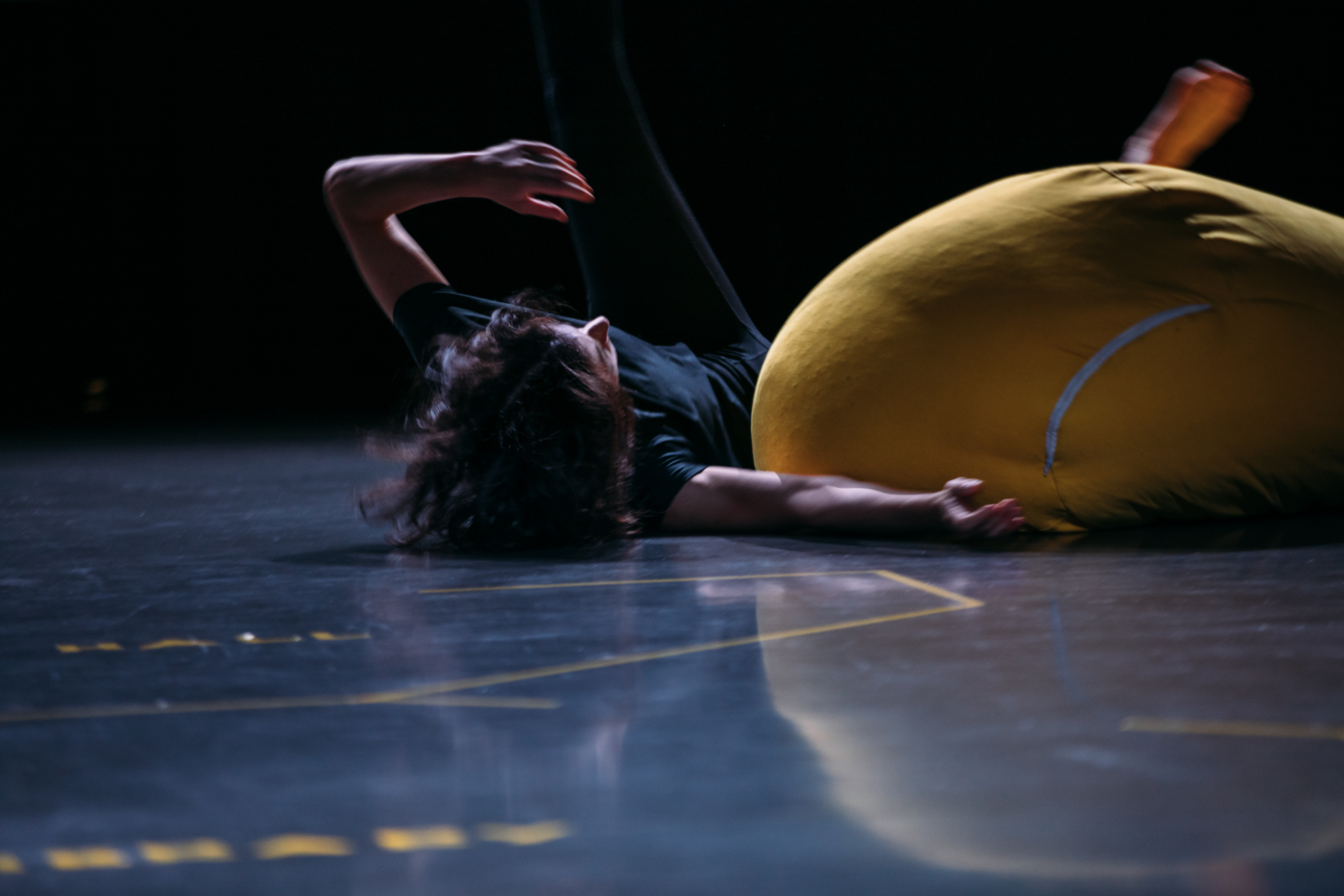 Asleep is a pop-up performance for one performer, one domestic object for rest (a bean bag pillow) and a circulating audience. The piece is discussing the body’s creativity and imaginative possibilities during the social distancing restrictions applied for Covid-19 pandemic. It creates an analogue to this “global pause” through bringing the body of the performer in a state of continuous “sleeping” mode. Drawing inspiration from the interchange between REM (dreaming) and non-REM (non-dreaming) sleeping cycles, the performer remains with her eyes dreamily closed, becoming intimate with, but also dependent upon her inhuman partner, as they whirl together between unpredictable movement, reality, and the subconscious.