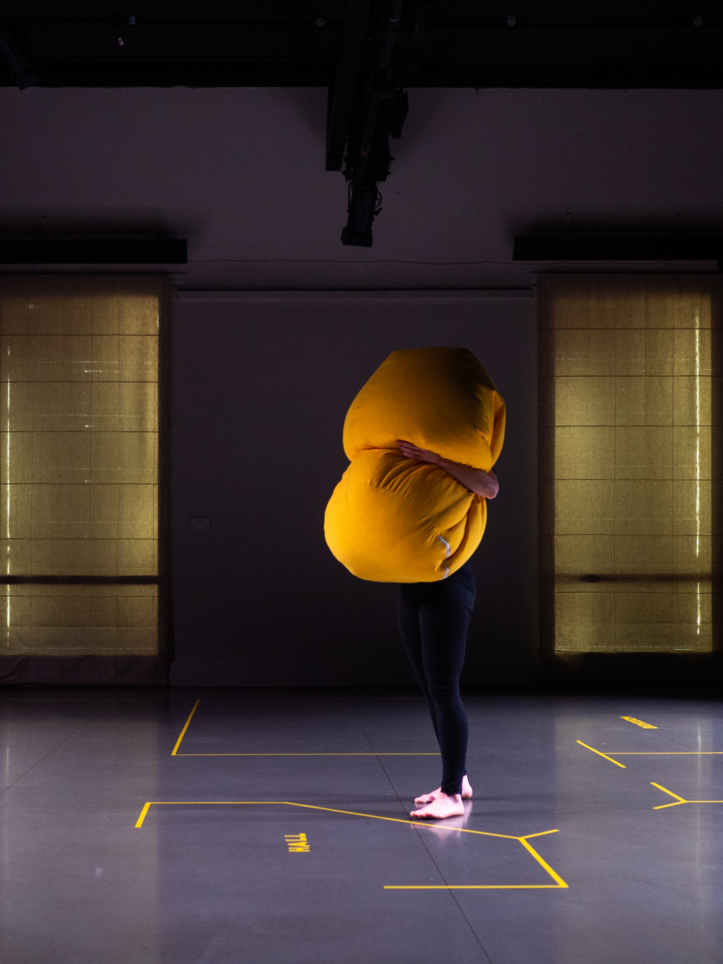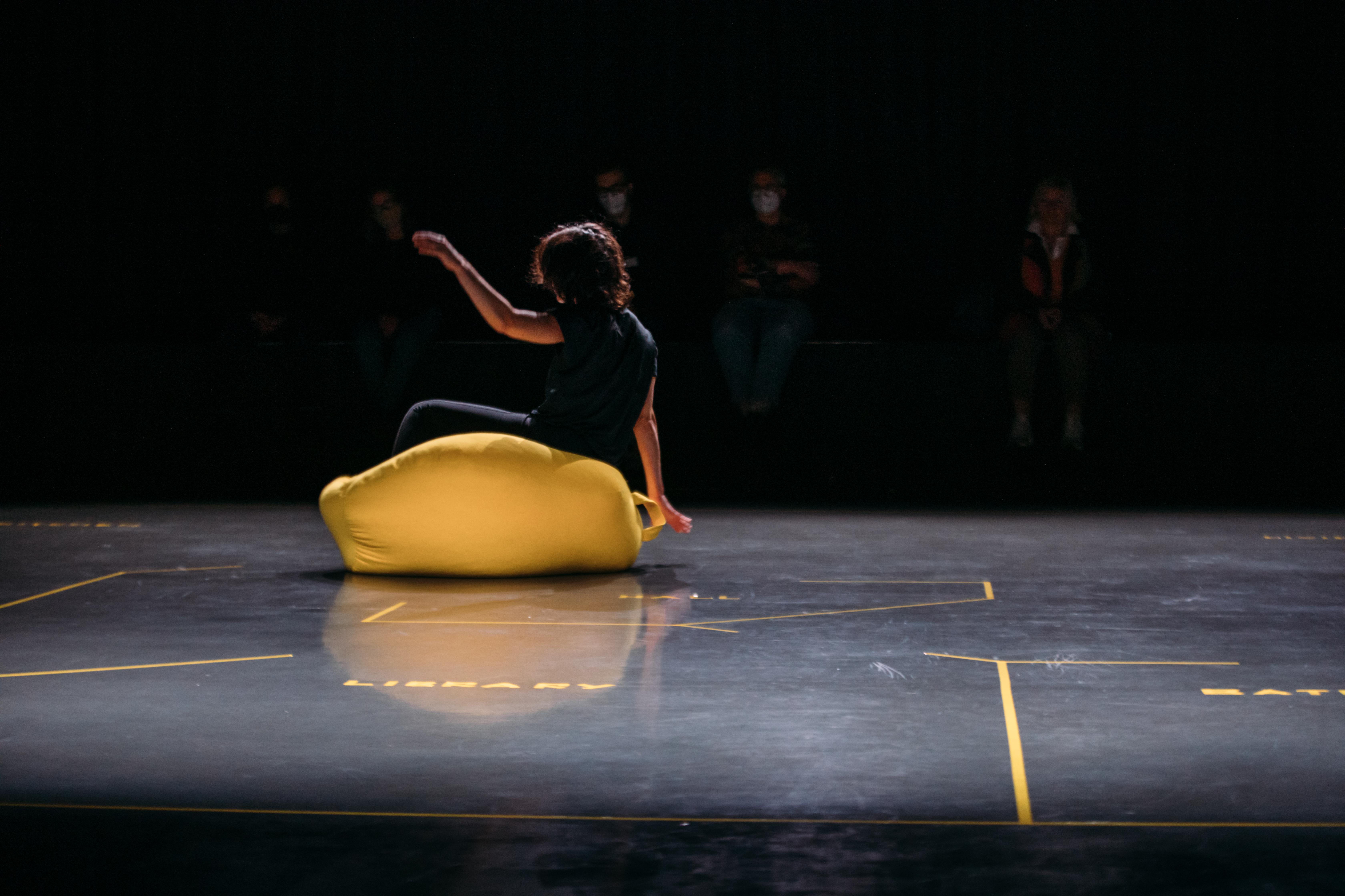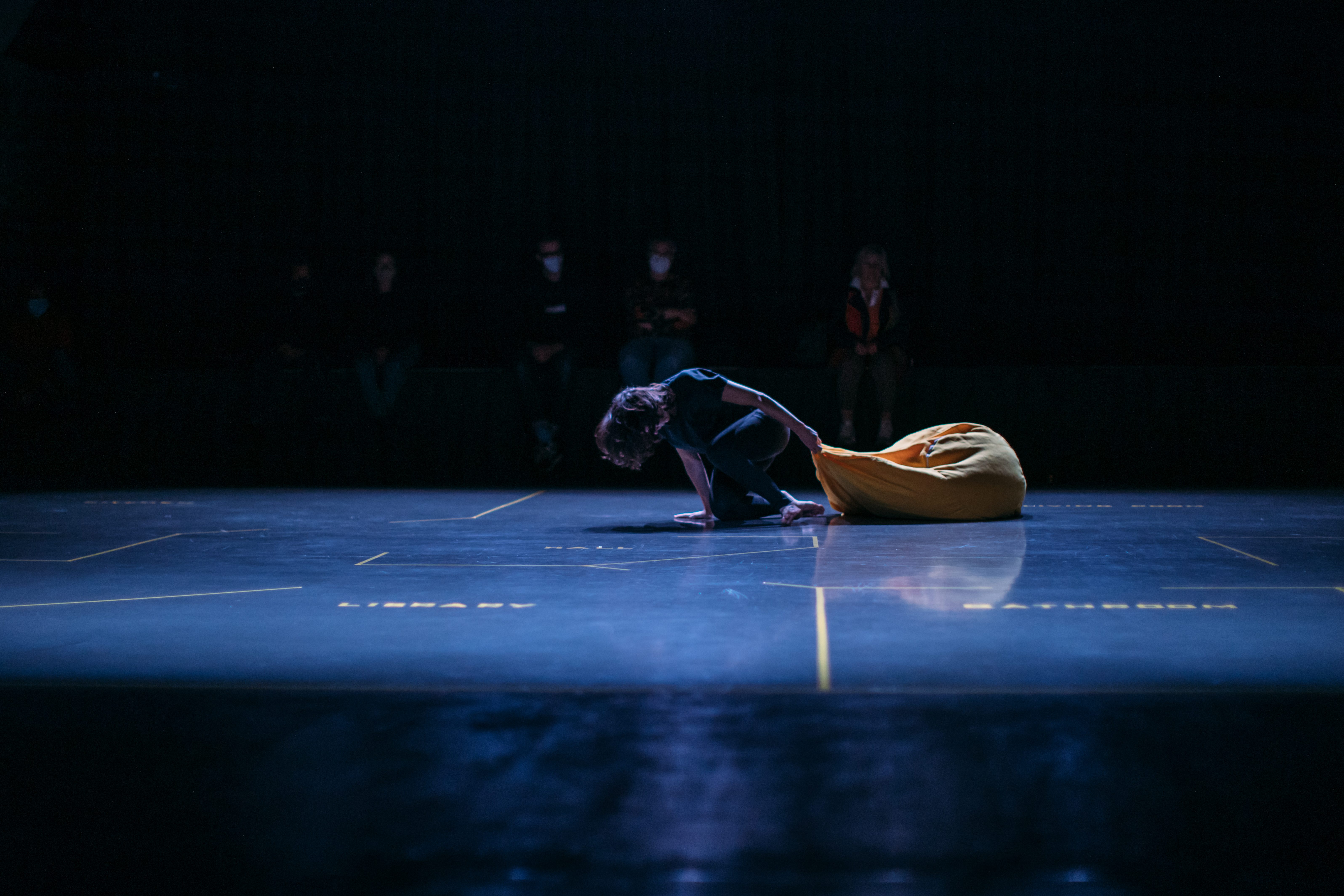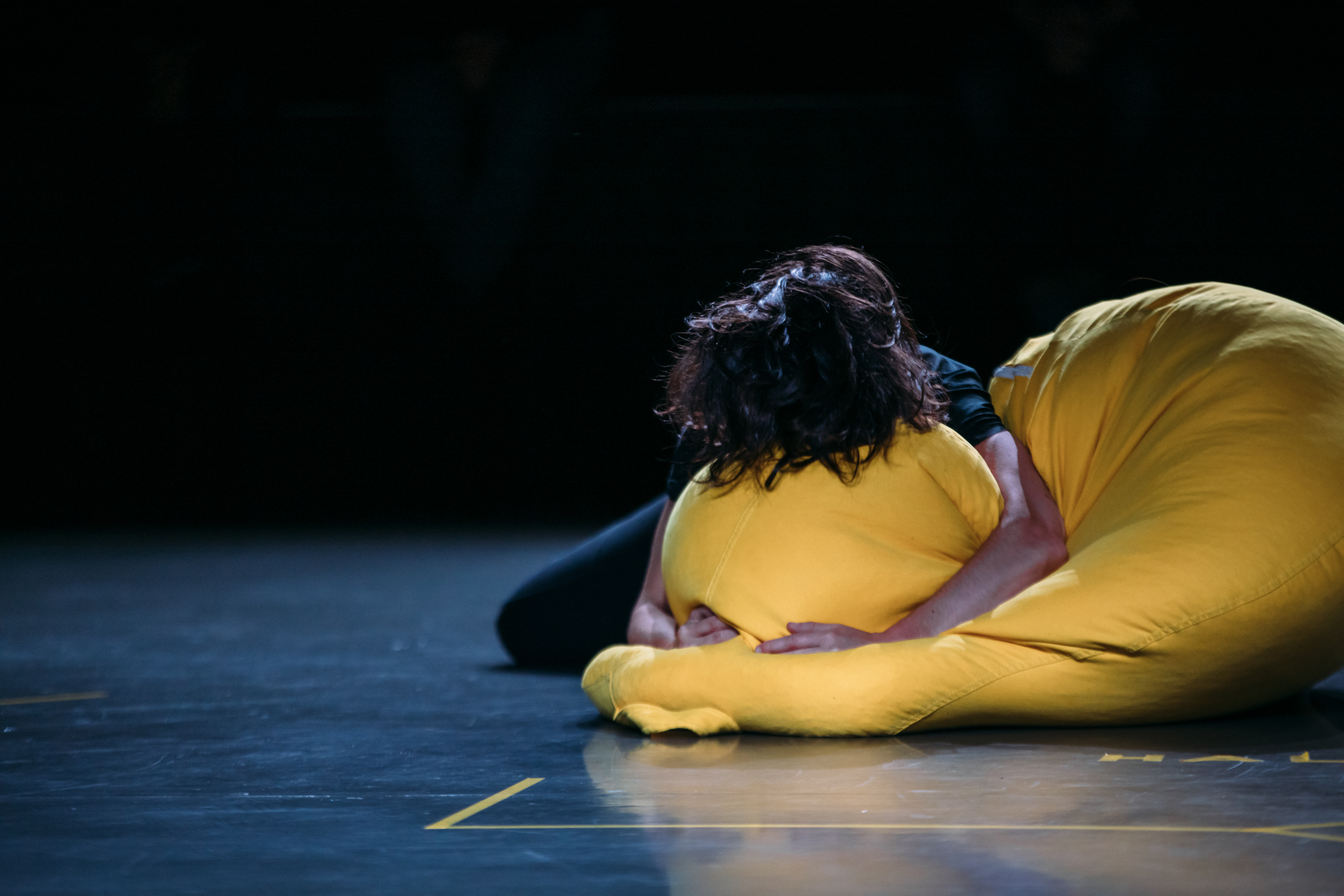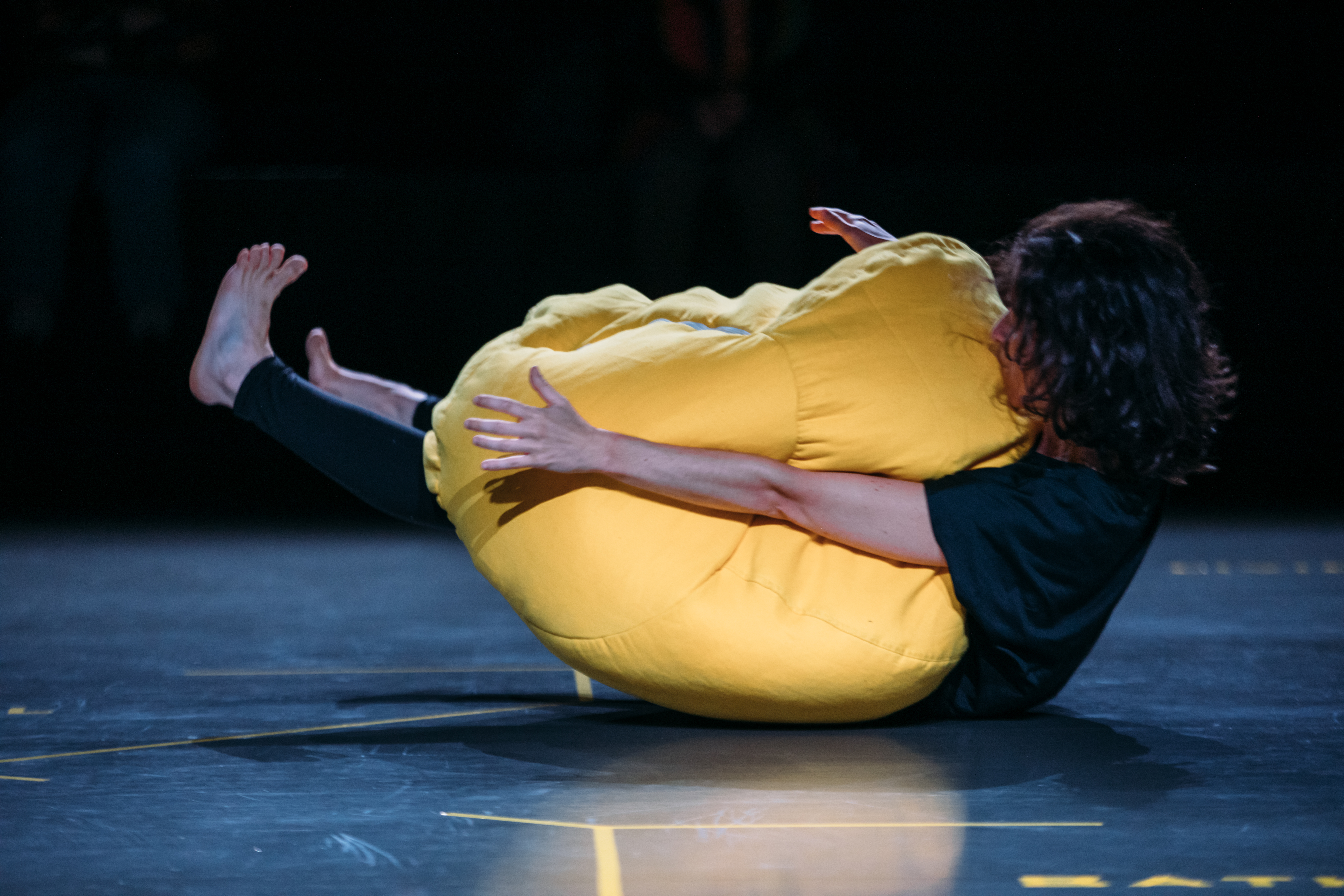 Asleep is a pop-up performance for one performer, one domestic object for rest (a bean bag pillow) and a circulating audience. The piece is discussing the body’s creativity and imaginative possibilities during the social distancing restrictions applied for Covid-19 pandemic. It creates an analogue to this “global pause” through bringing the body of the performer in a state of continuous “sleeping” mode. Drawing inspiration from the interchange between REM (dreaming) and non-REM (non-dreaming) sleeping cycles, the performer remains with her eyes dreamily closed, becoming intimate with, but also dependent upon her inhuman partner, as they whirl together between unpredictable movement, reality, and the subconscious.
