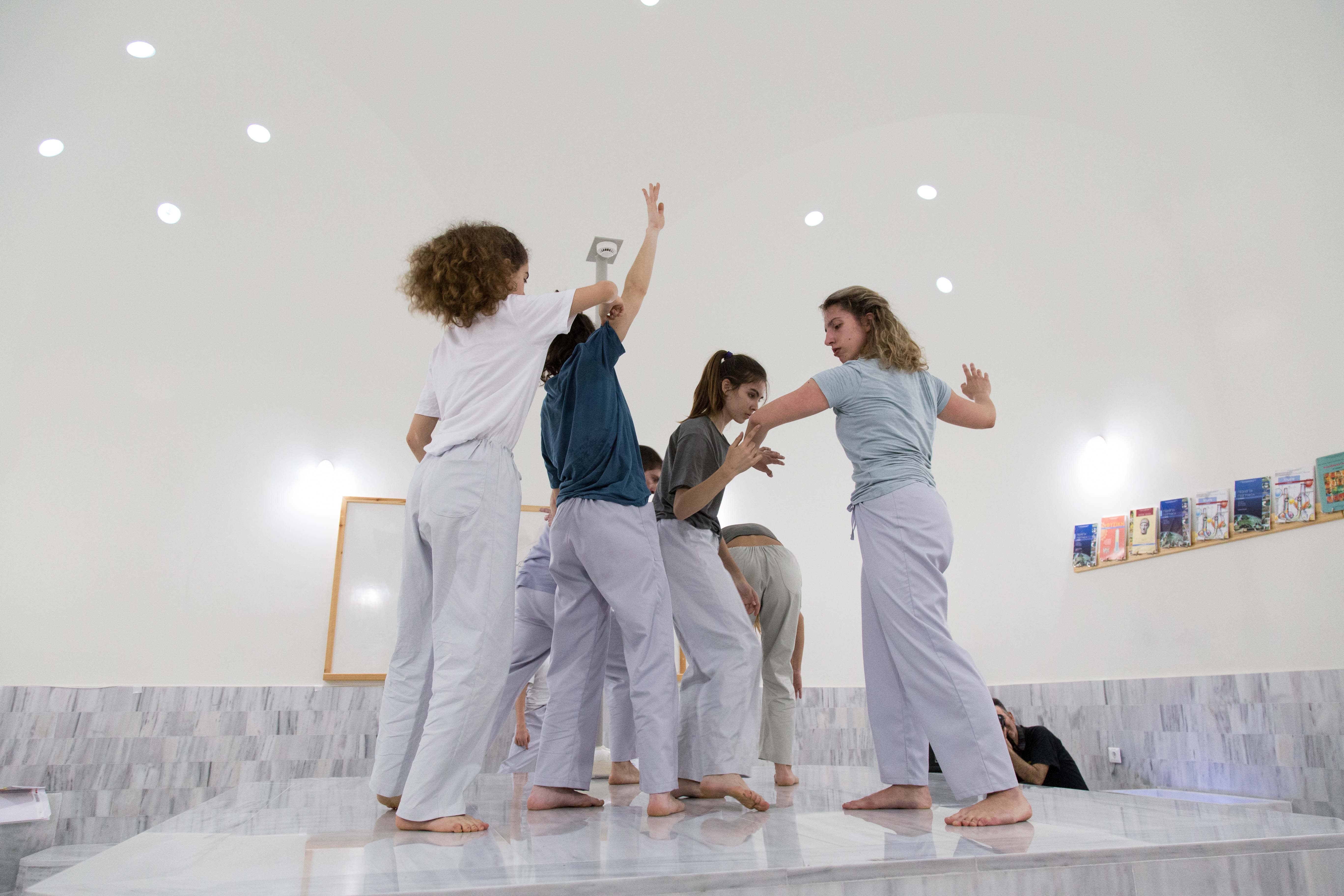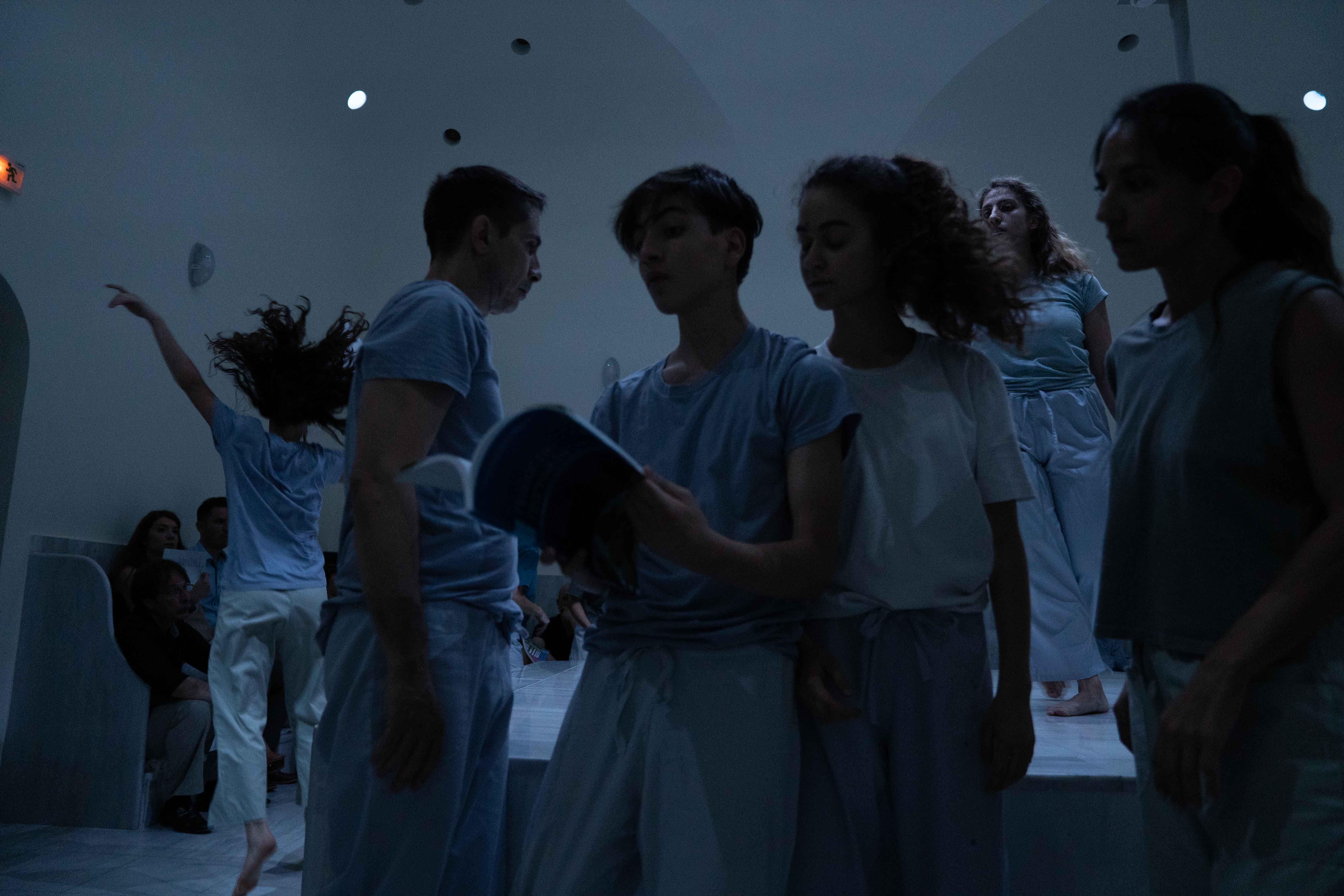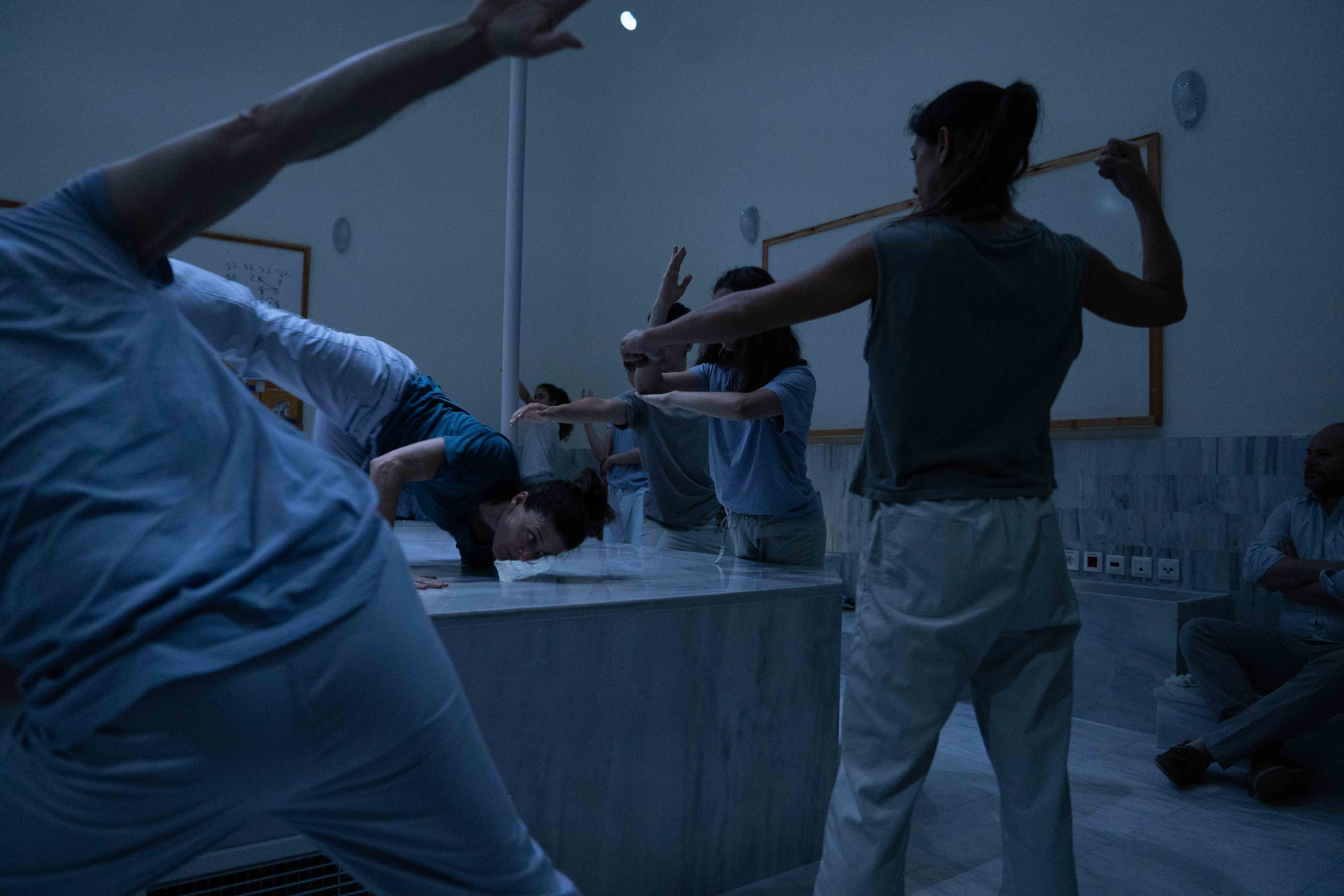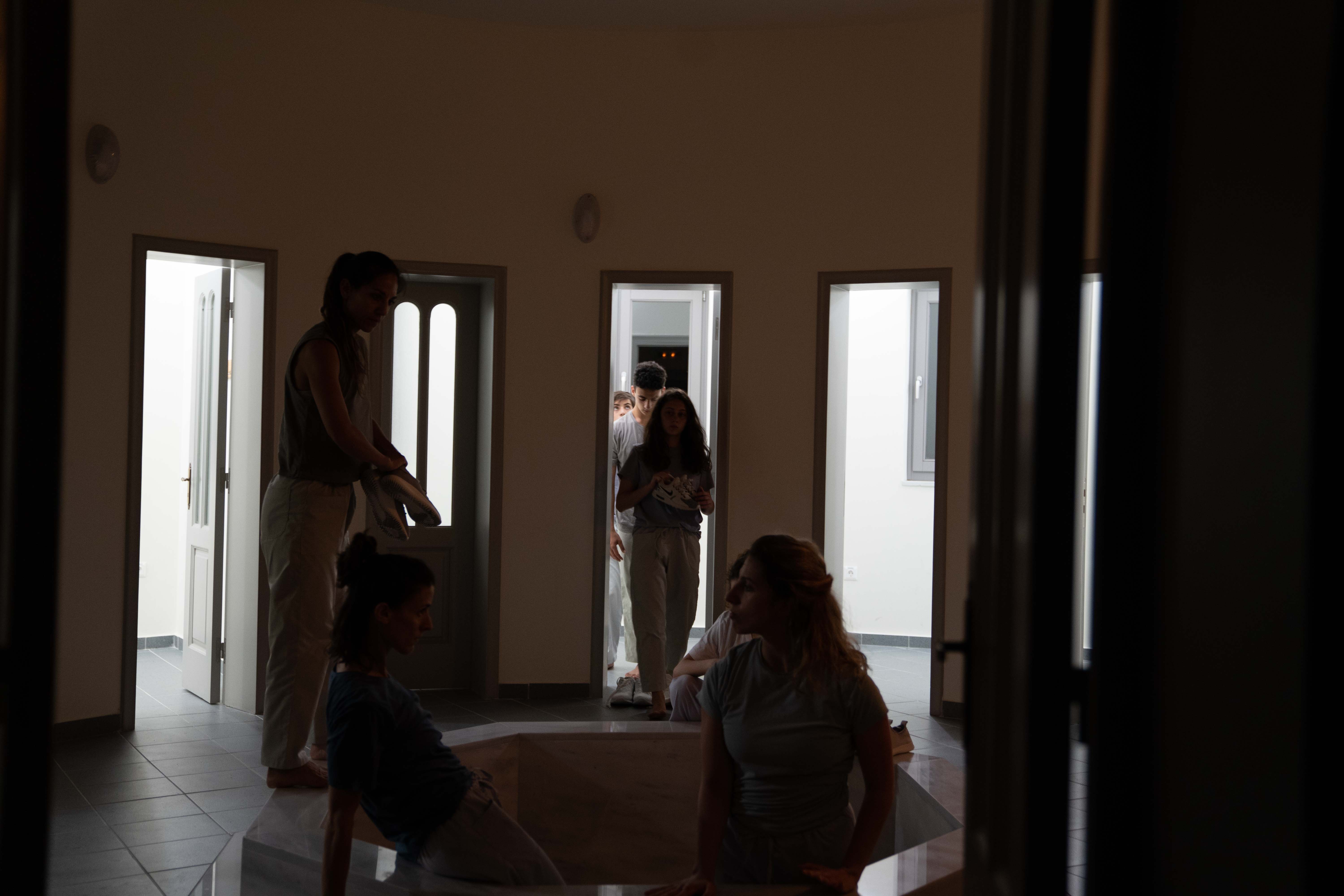 “BodIS” performance results from site-specific research at the historical spaces of Keratsini School of Art, which used to be the Armenian “Palandjian” hammam (1932-1972). The collaboration of the creator with the multigenerational group of adult dancers and dance students of the school intends to bridge the past and present of the building through a symbolic dialogue of Body, Time, and Architectural Space. The dramaturgy explores if the body, emancipated from its socially disciplined and professionally constructed self (persona), could lead to a more versatile and human way of being together. In that context, the historical bath turns into an alternative school, in which the body “underdresses” its socially constructed self to learn how to relate in a non-stereotypical way with itself and others.