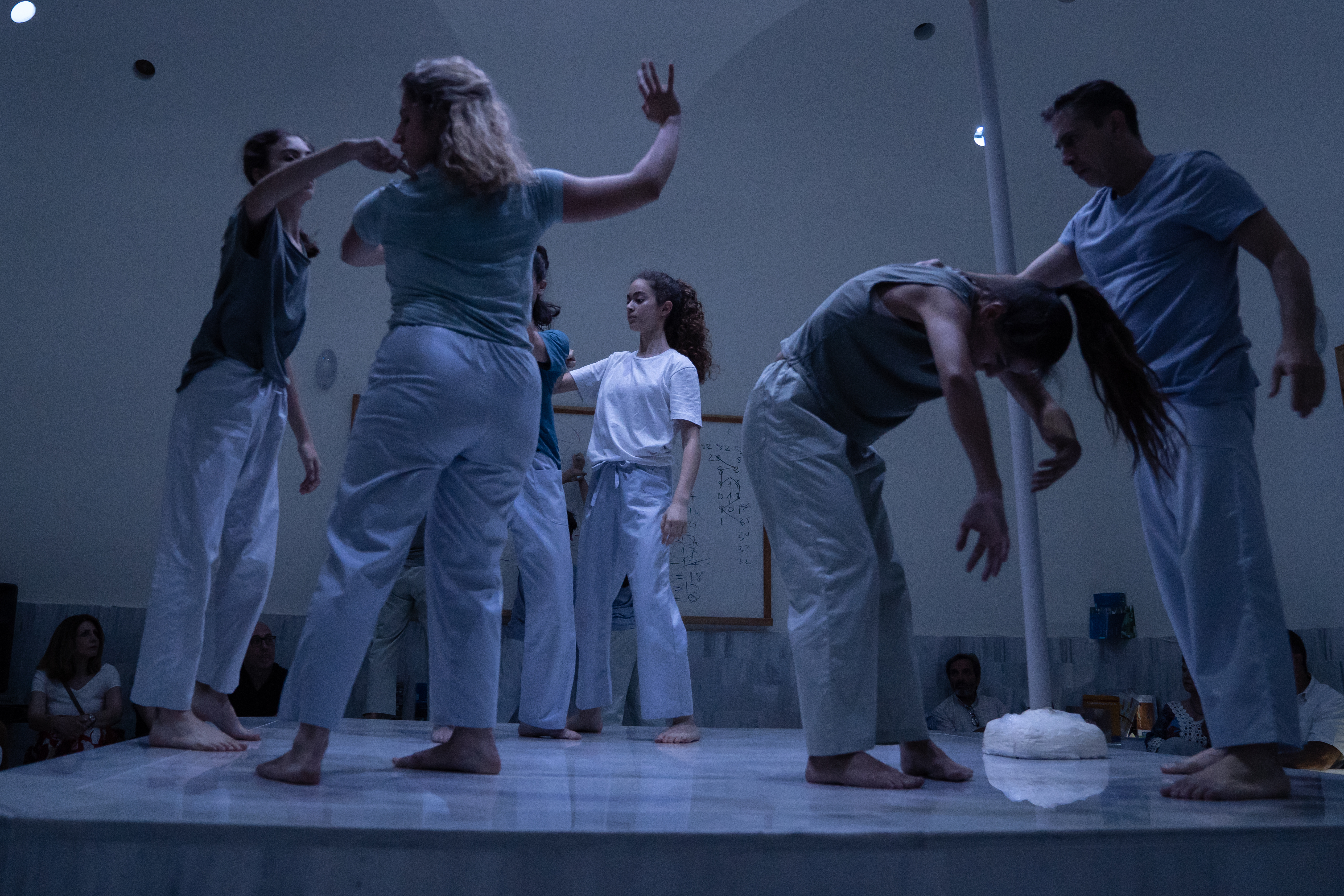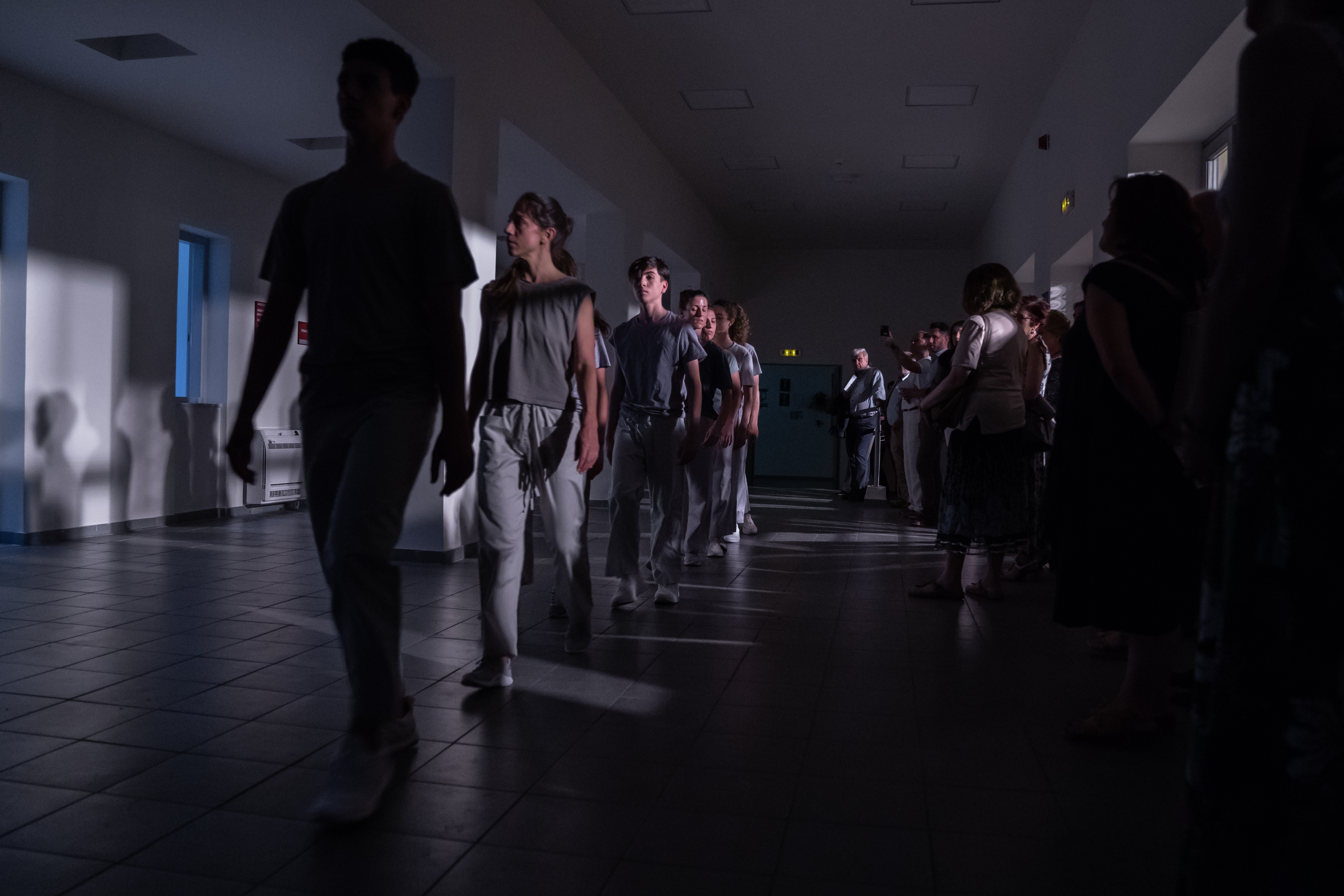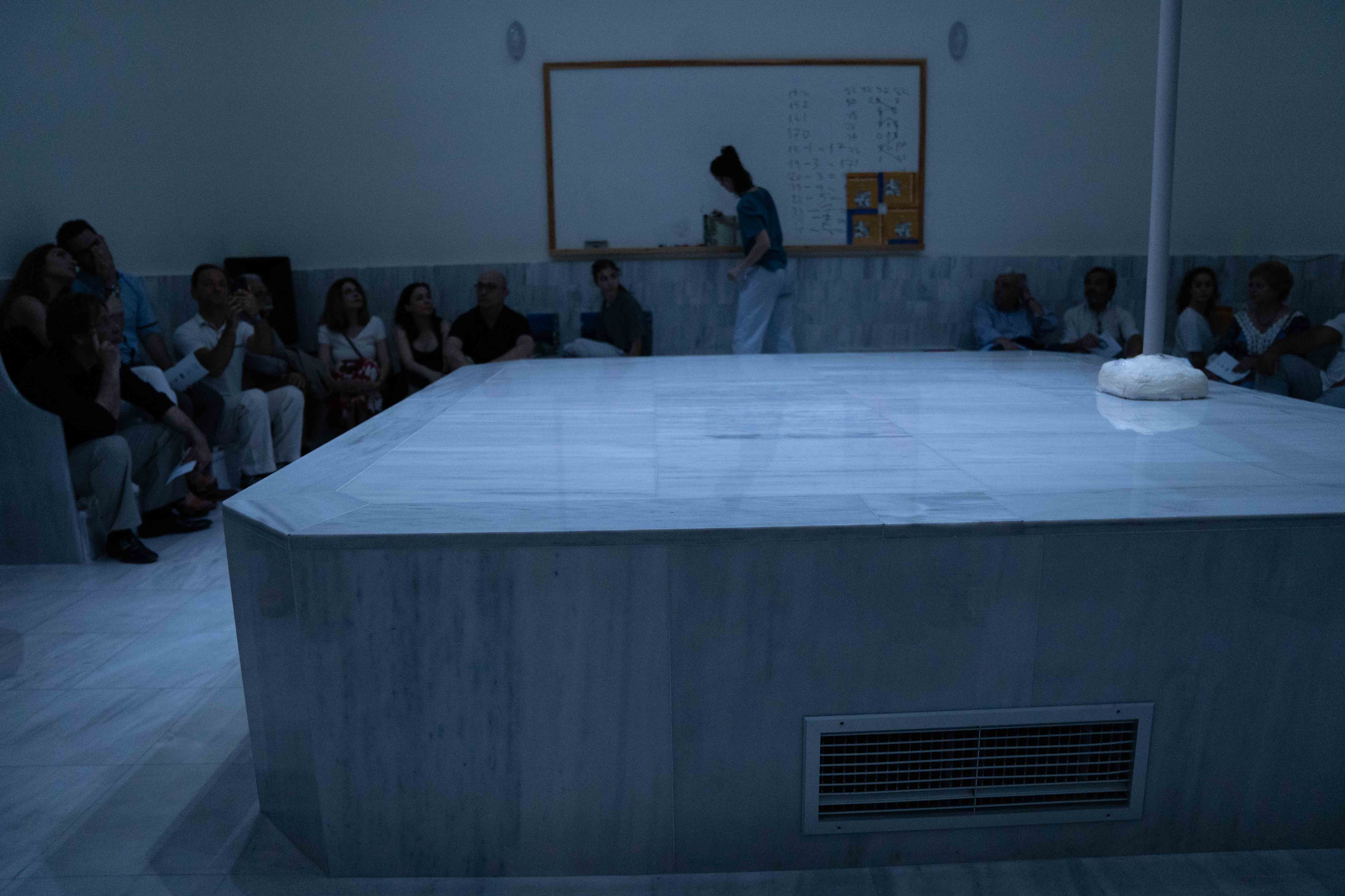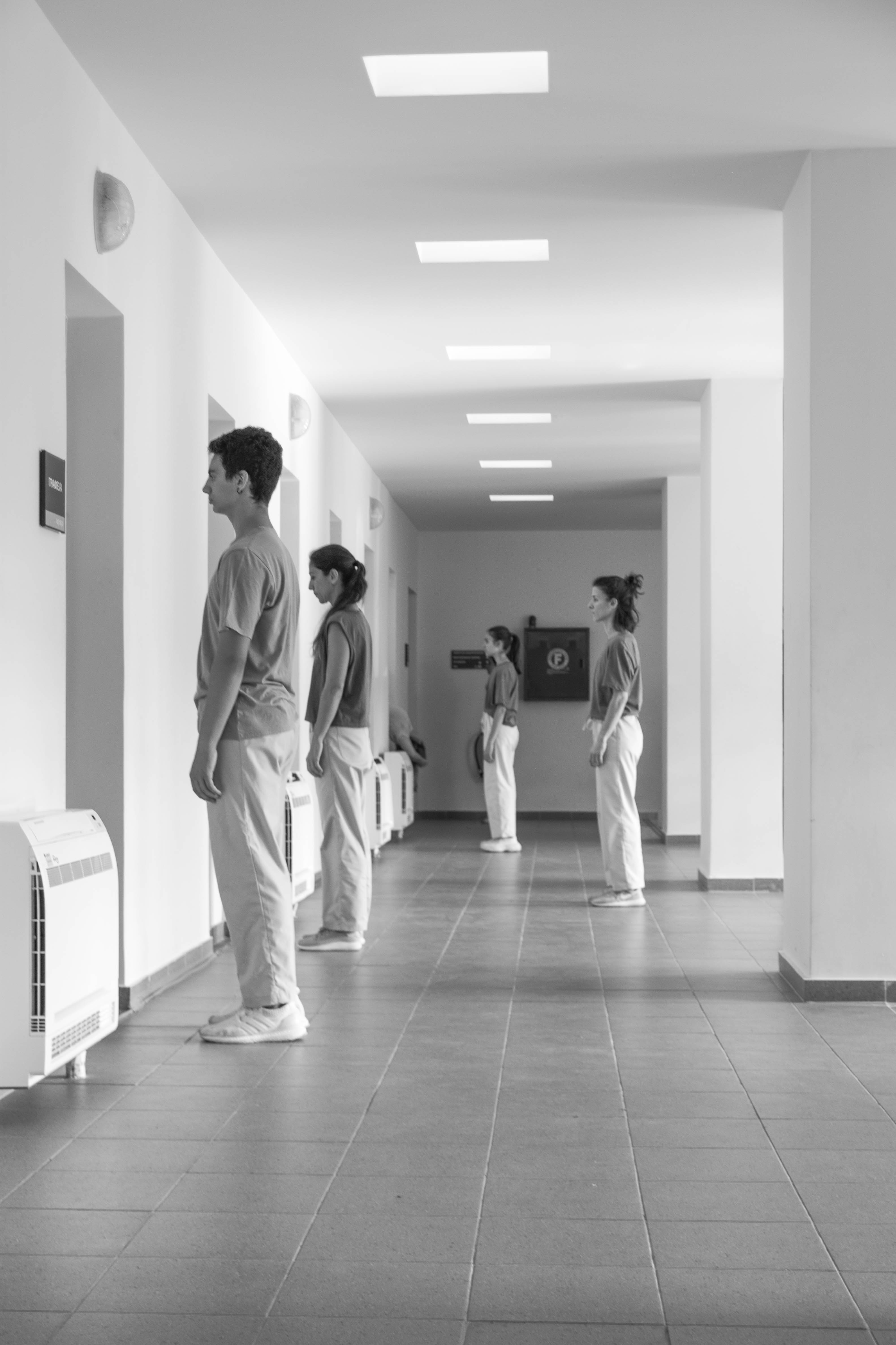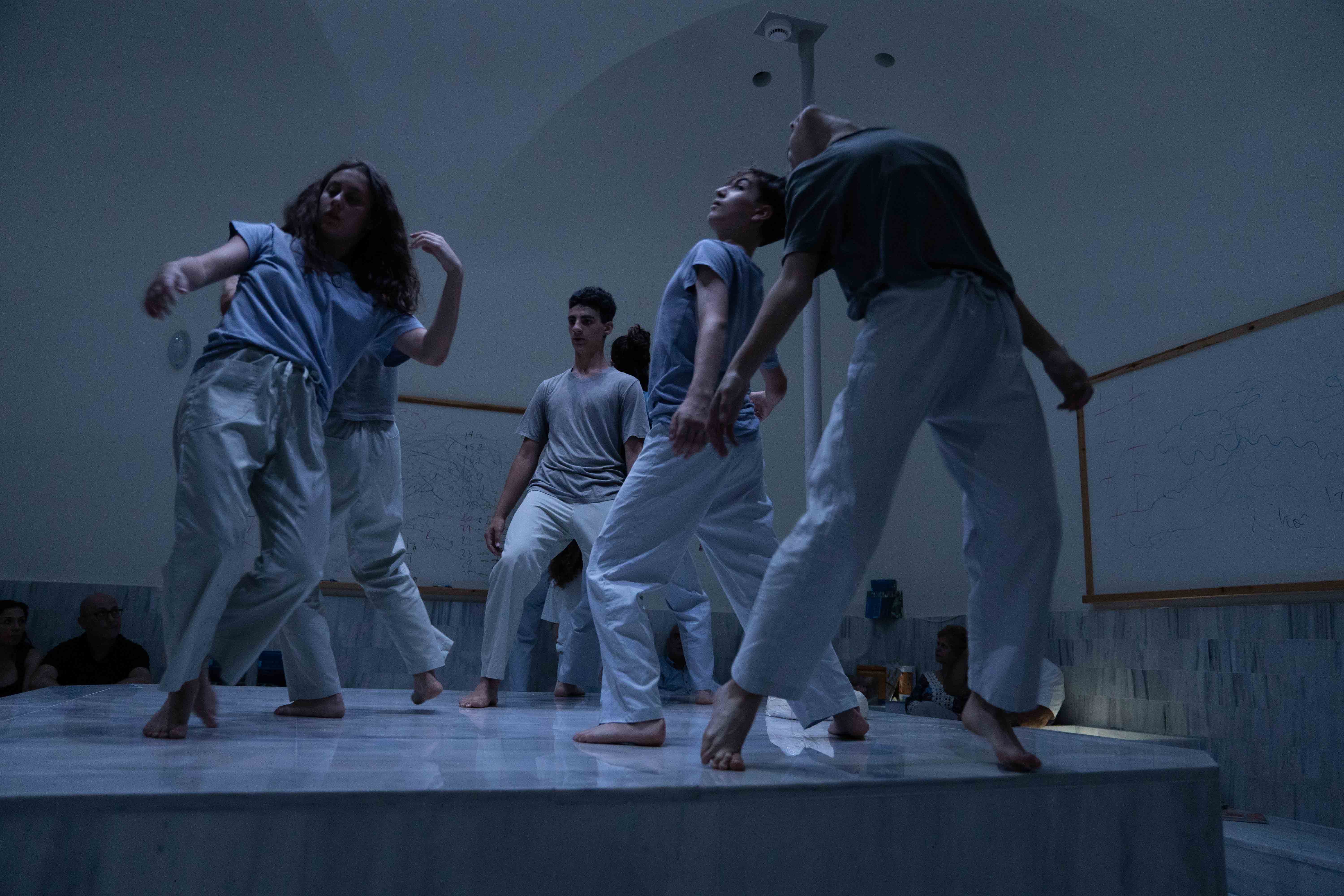 “BodIS” performance results from site-specific research at the historical spaces of Keratsini School of Art, which used to be the Armenian “Palandjian” hammam (1932-1972). The collaboration of the creator with the multigenerational group of adult dancers and dance students of the school intends to bridge the past and present of the building through a symbolic dialogue of Body, Time, and Architectural Space. The dramaturgy explores if the body, emancipated from its socially disciplined and professionally constructed self (persona), could lead to a more versatile and human way of being together. In that context, the historical bath turns into an alternative school, in which the body “underdresses” its socially constructed self to learn how to relate in a non-stereotypical way with itself and others.