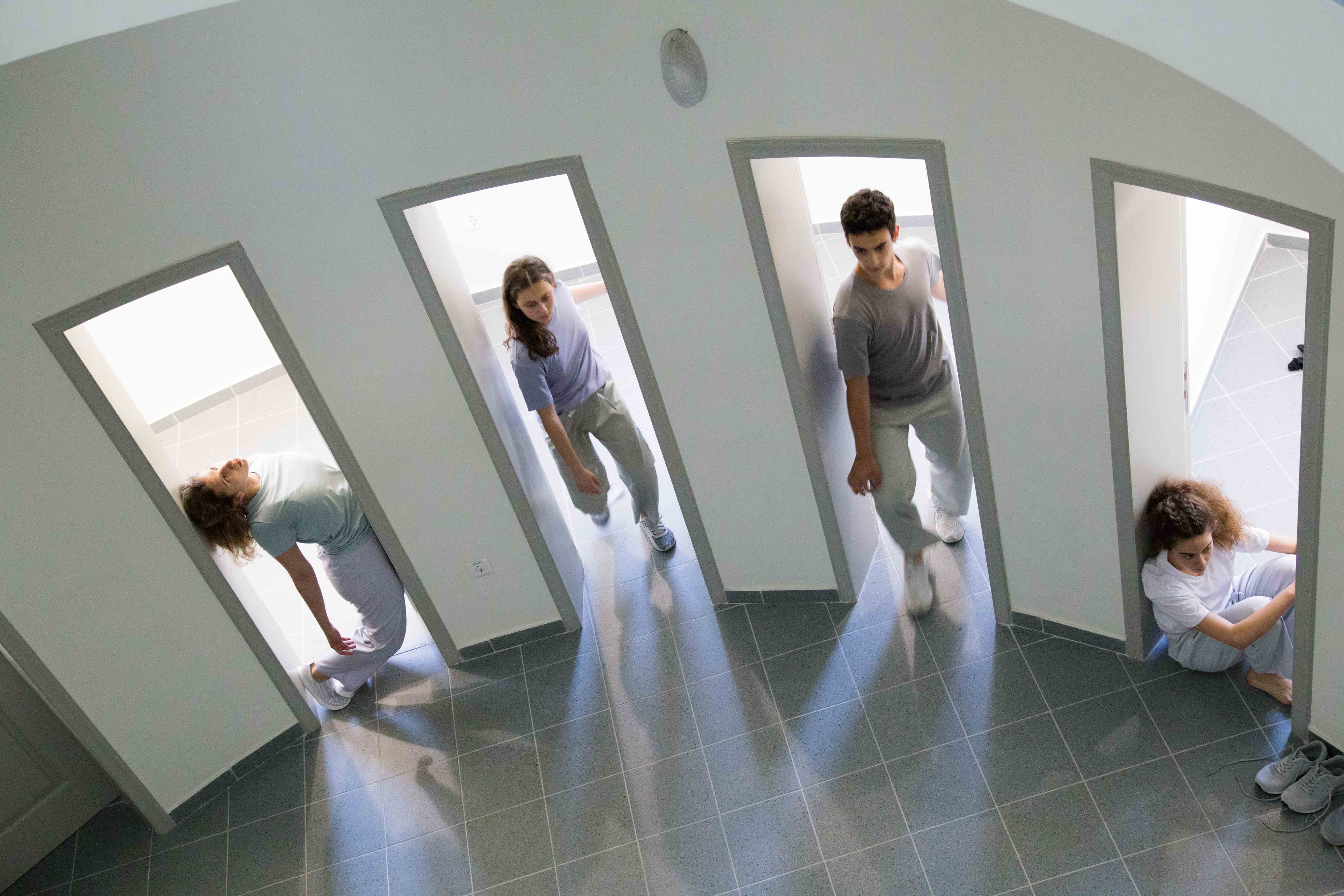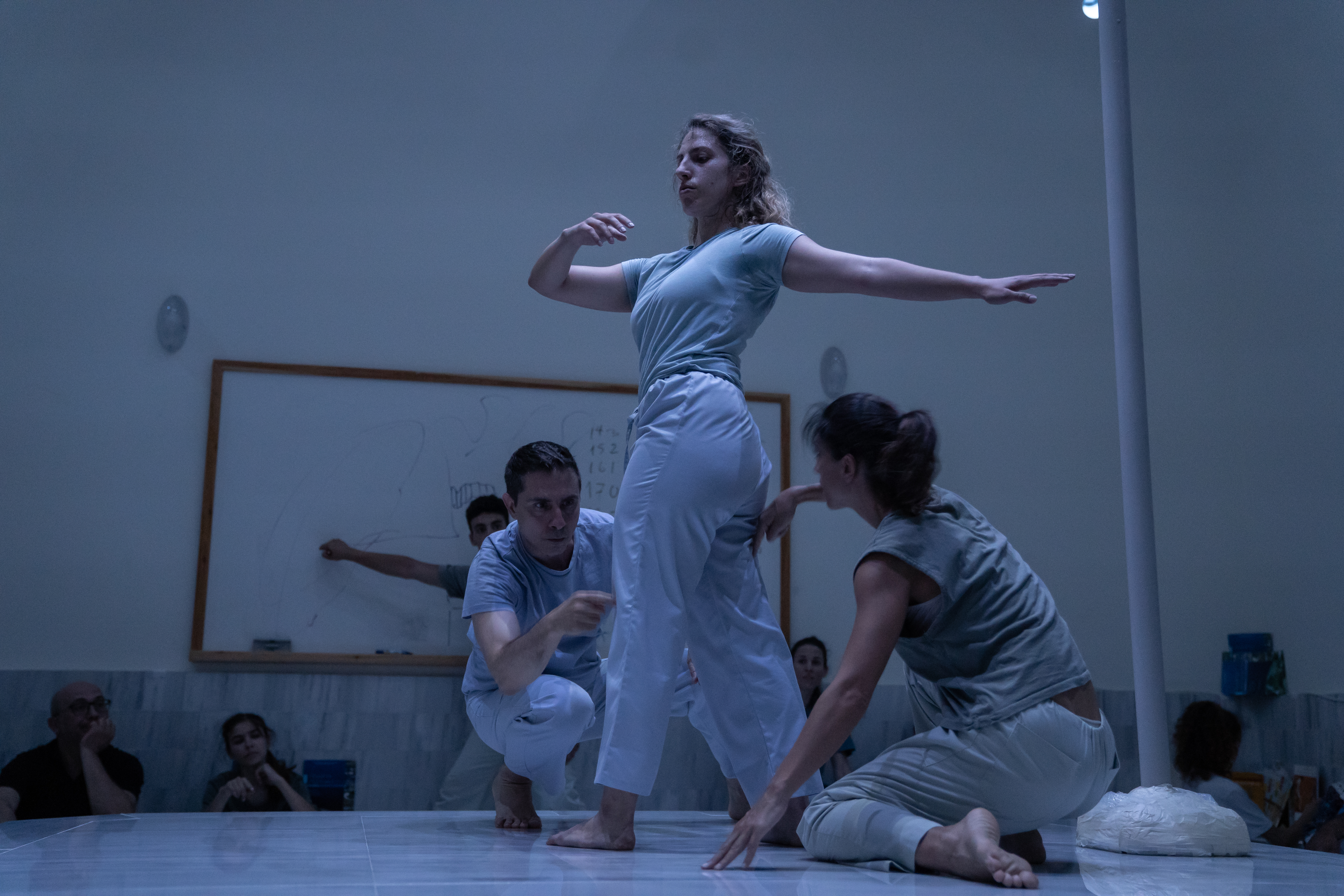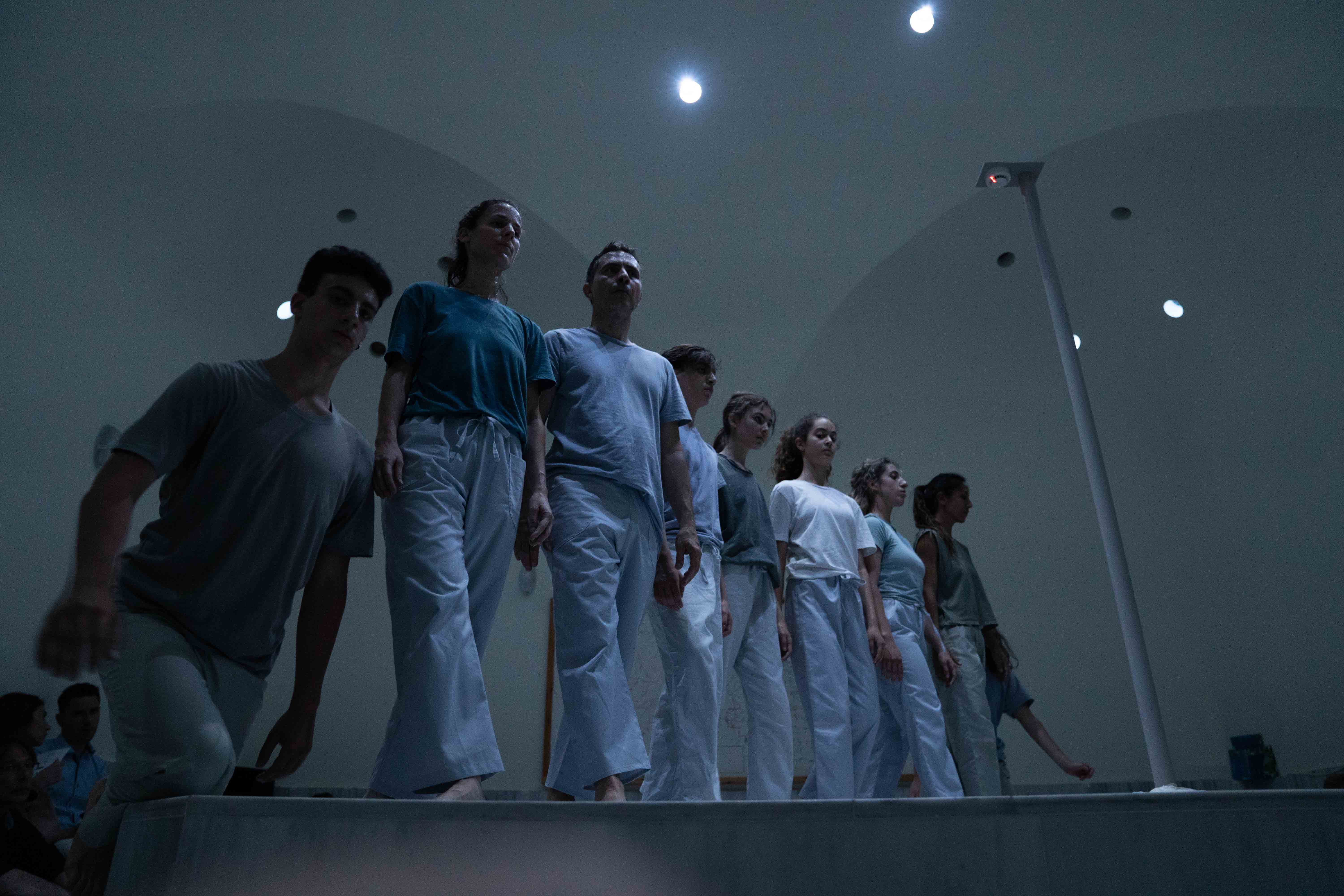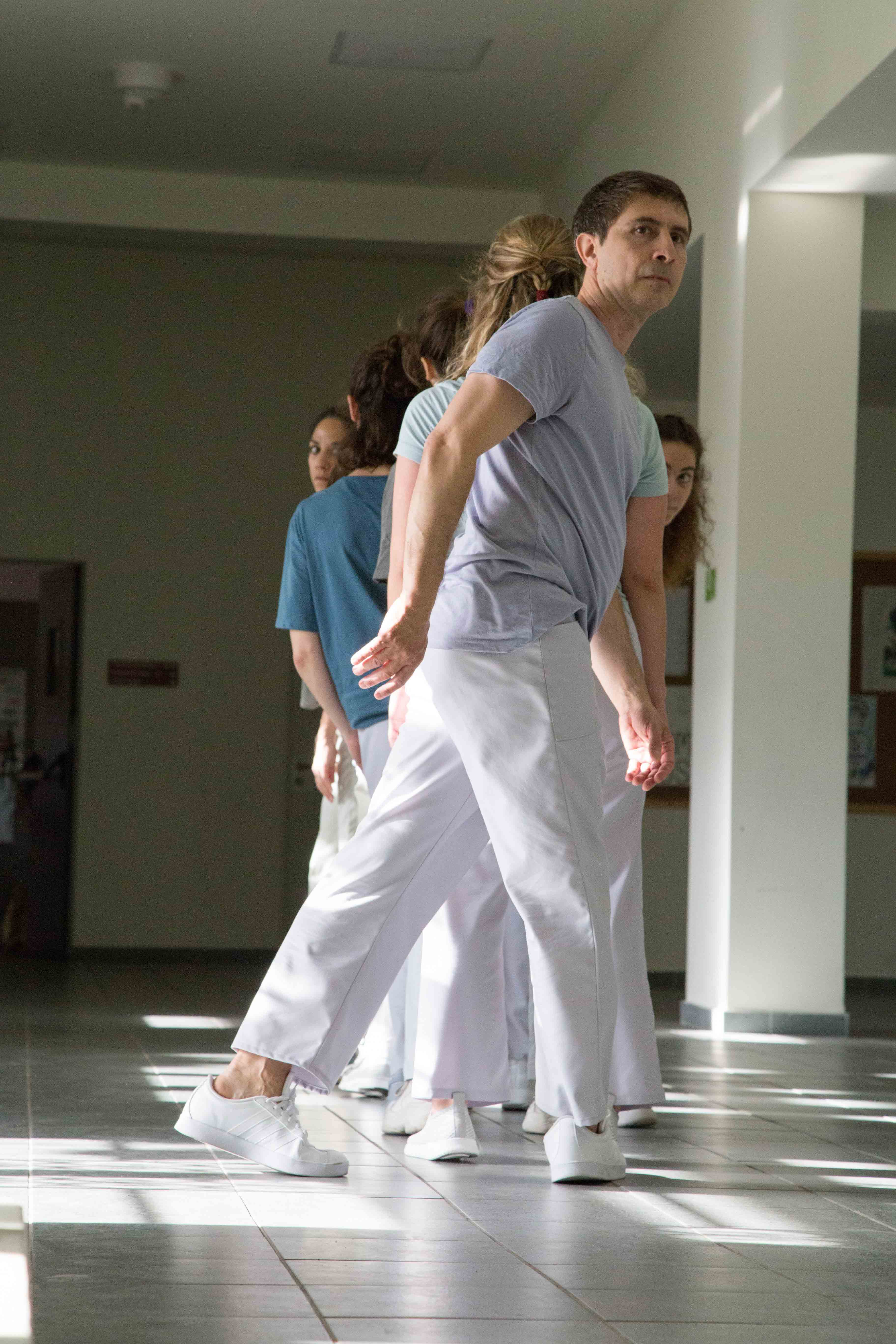 “BodIS” performance results from site-specific research at the historical spaces of Keratsini School of Art, which used to be the Armenian “Palandjian” hammam (1932-1972). The collaboration of the creator with the multigenerational group of adult dancers and dance students of the school intends to bridge the past and present of the building through a symbolic dialogue of Body, Time, and Architectural Space. The dramaturgy explores if the body, emancipated from its socially disciplined and professionally constructed self (persona), could lead to a more versatile and human way of being together. In that context, the historical bath turns into an alternative school, in which the body “underdresses” its socially constructed self to learn how to relate in a non-stereotypical way with itself and others.