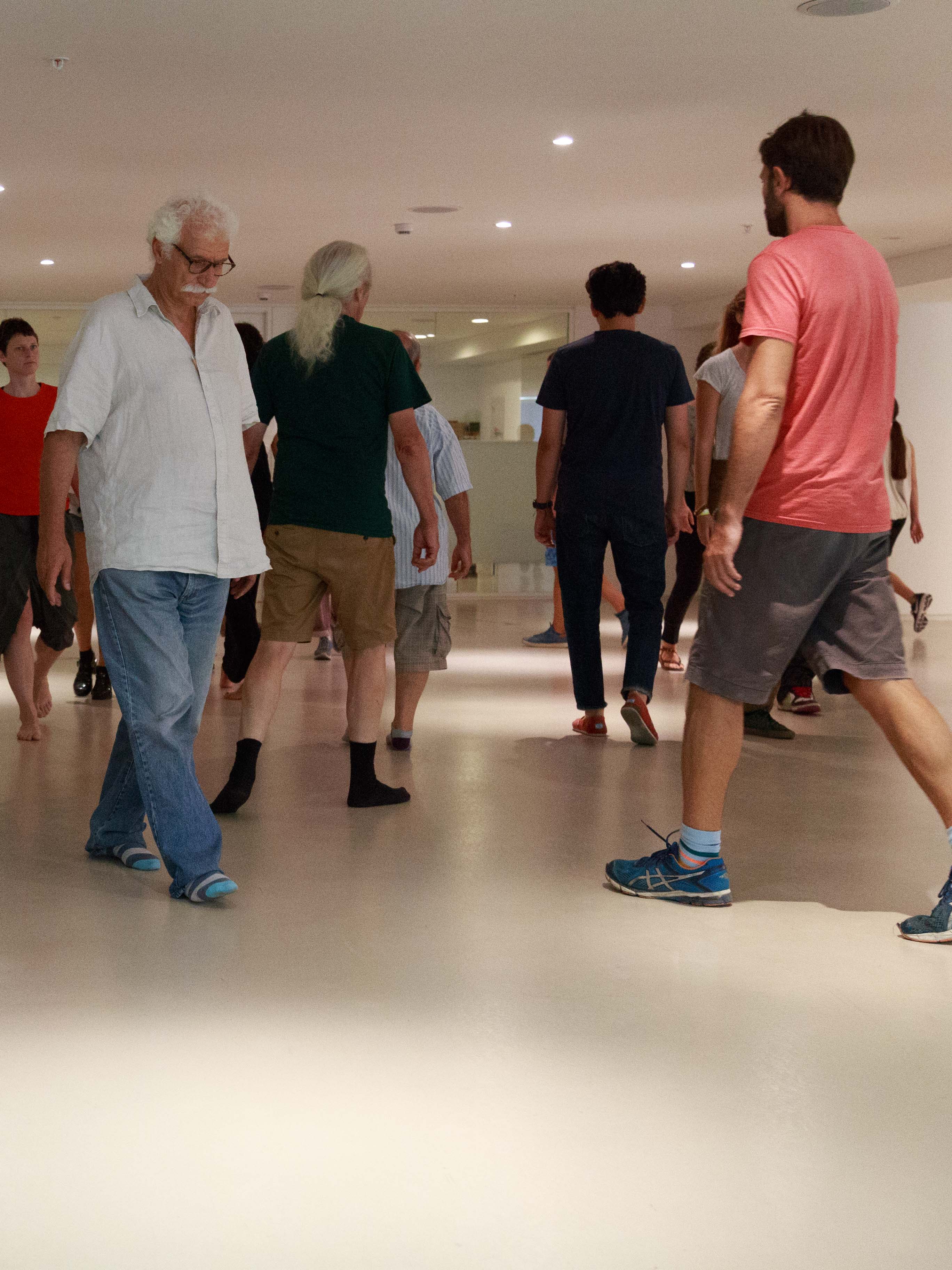 Through specifically designed observation exercises and movement improvisation the theoretical part of this research is revealed to the participant in an experiential way. The above concepts are realized somatically, for they are “hidden” in visualization exercises and movement research. At first, the participants are trained on detecting the inner tendencies and rules that determine their own bodies and, then, the other bodies, objects and symbolic abstract concepts like an unformed artistic idea. What we call “Body” embeds space, time, energy, places, actions and ideas.