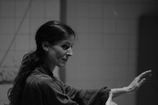 Σοφία Κονδυλιά: – Στην παράσταση – διάλεξη HUMAN CONSTRUCTIONS χτίζω τη σχέση μου με το κοινό μέσα στα πρώτα πέντε λεπτά. Είναι πολύ σημαντική η αρχή της παράστασης. Έχει να κάνει με την τοποθέτηση όχι μόνο του λόγου, αλλά και του βλέμματος και του σώματος συνολικά και ακόμη, με τον εγγενή ρυθμό του έργου. Γιατί ο ρυθμός έχει την ιδιότητα να μεταδίδεται. Και εκεί επάνω χτίζεται η «κίνηση» ολόκληρου του έργου, που επαγωγικά φέρνει την κιναισθητική «συν-κίνηση» του θεατή και την επικοινωνία. Μπορώ να σας πω, πως τα πρώτα πέντε λεπτά της παράστασης με δυσκόλεψαν και με προβλημάτισαν πιο πολύ από κάθε άλλο σημείο του έργου. Αργότερα το κοινό συμμετέχει και πολύ πιο ενεργά, καθώς καλώ εθελοντές στη σκηνή, και χωρίς αυτούς η διάλεξη είναι αδύνατον να συνεχιστεί. Αυτό, οφείλω να το χτίσω από τα πρώτα πέντε λεπτά.