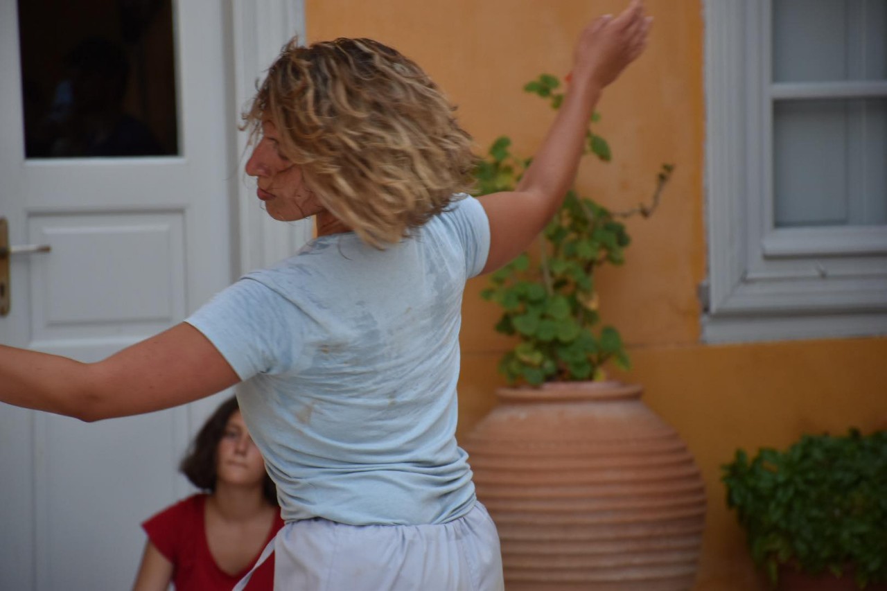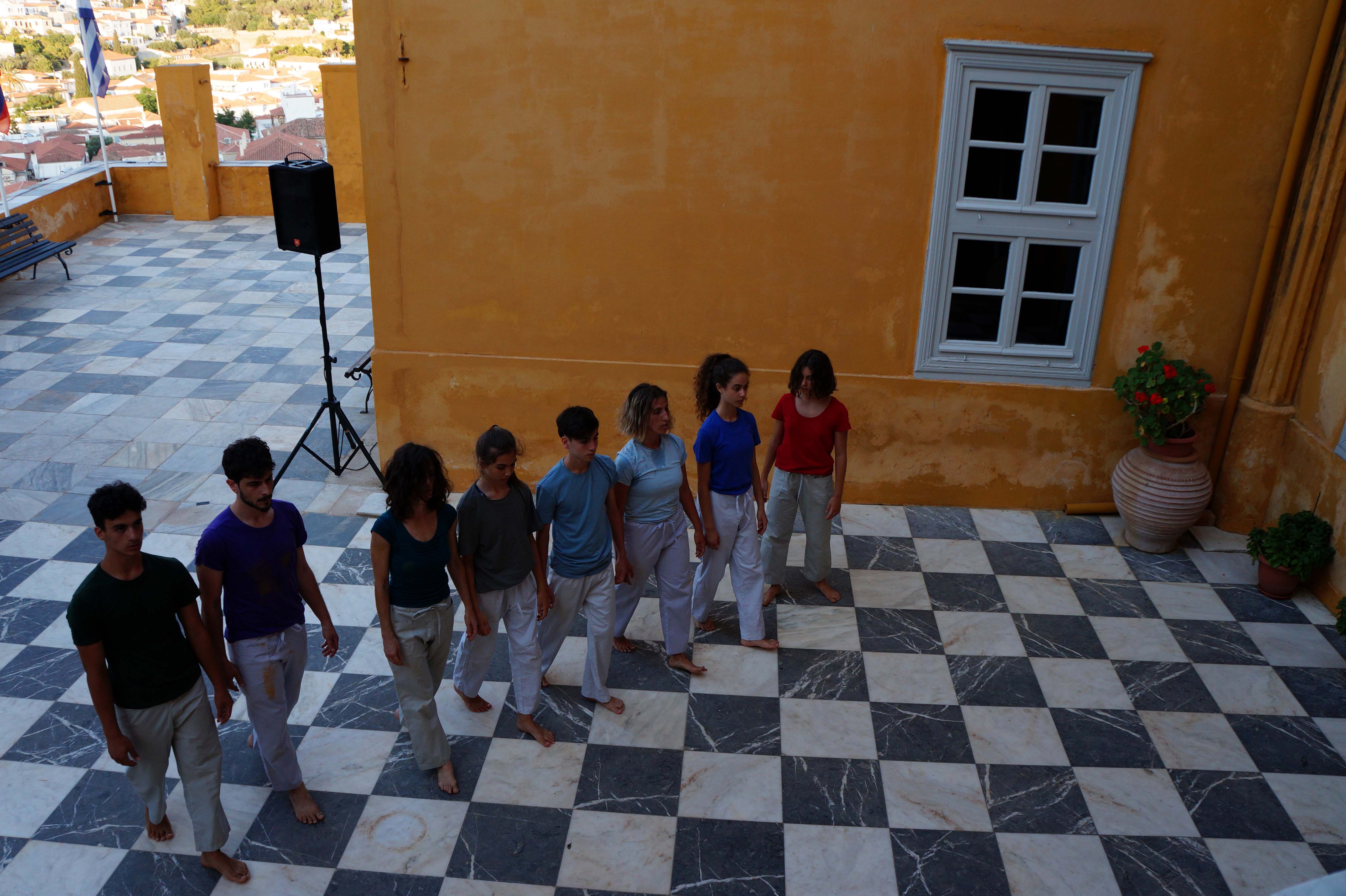 A mixed-aged group piece, co-created during the summer artistic residency of “BodIS” performance team at Animart festival, Hydra. The piece opens a poetic dialogue with the ages of L.Koundouriotis Historical Mansion, while exploring self-reflective trajectories through renacting parts of “BodIS” site-specific performance in a different space and historical context.