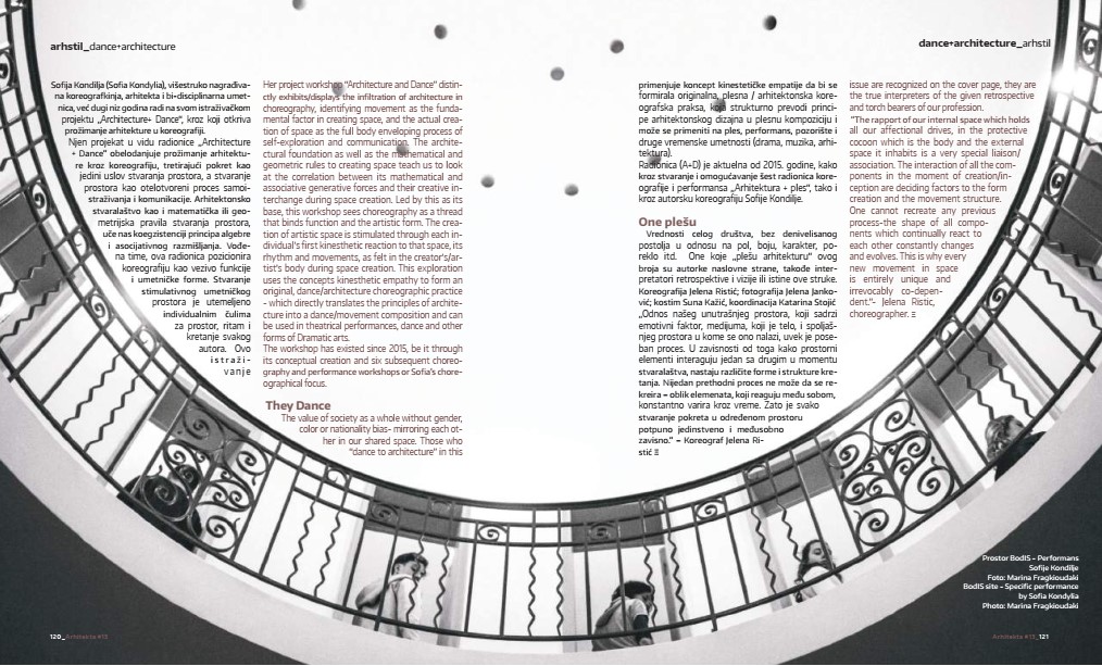 Sofia Kondylia, an award-winning choreographer, architect and multidisciplinary artist has been investigating and analyzing “Architecture and Dance” as a long-term project looking at permeation of architecture in choreography.