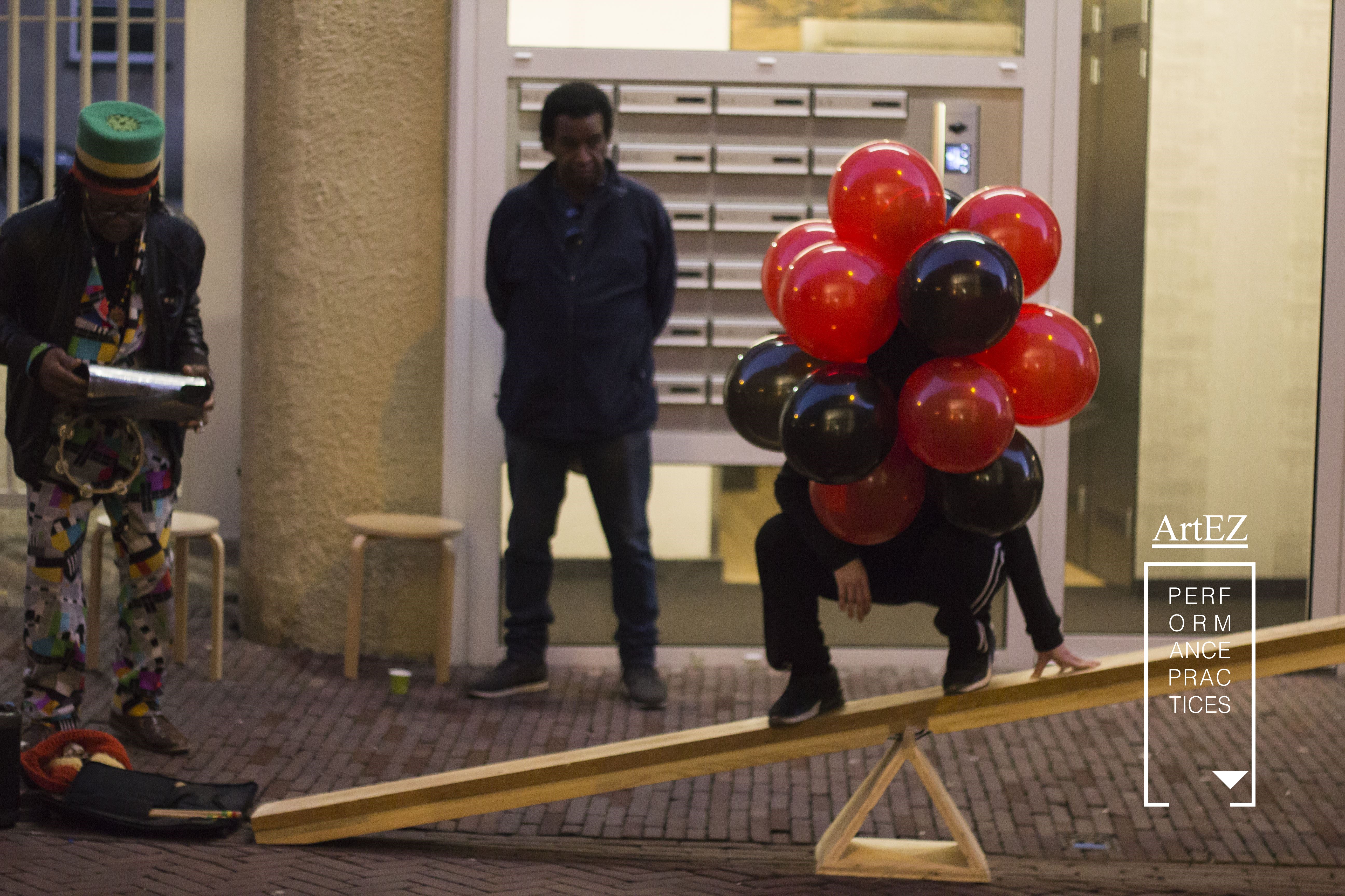 In this site-specific act, the performer explores her possible relation with a wooden see saw and the urban environment conditioned both by her non-seeing and her fragile balancing on the middle of the object.